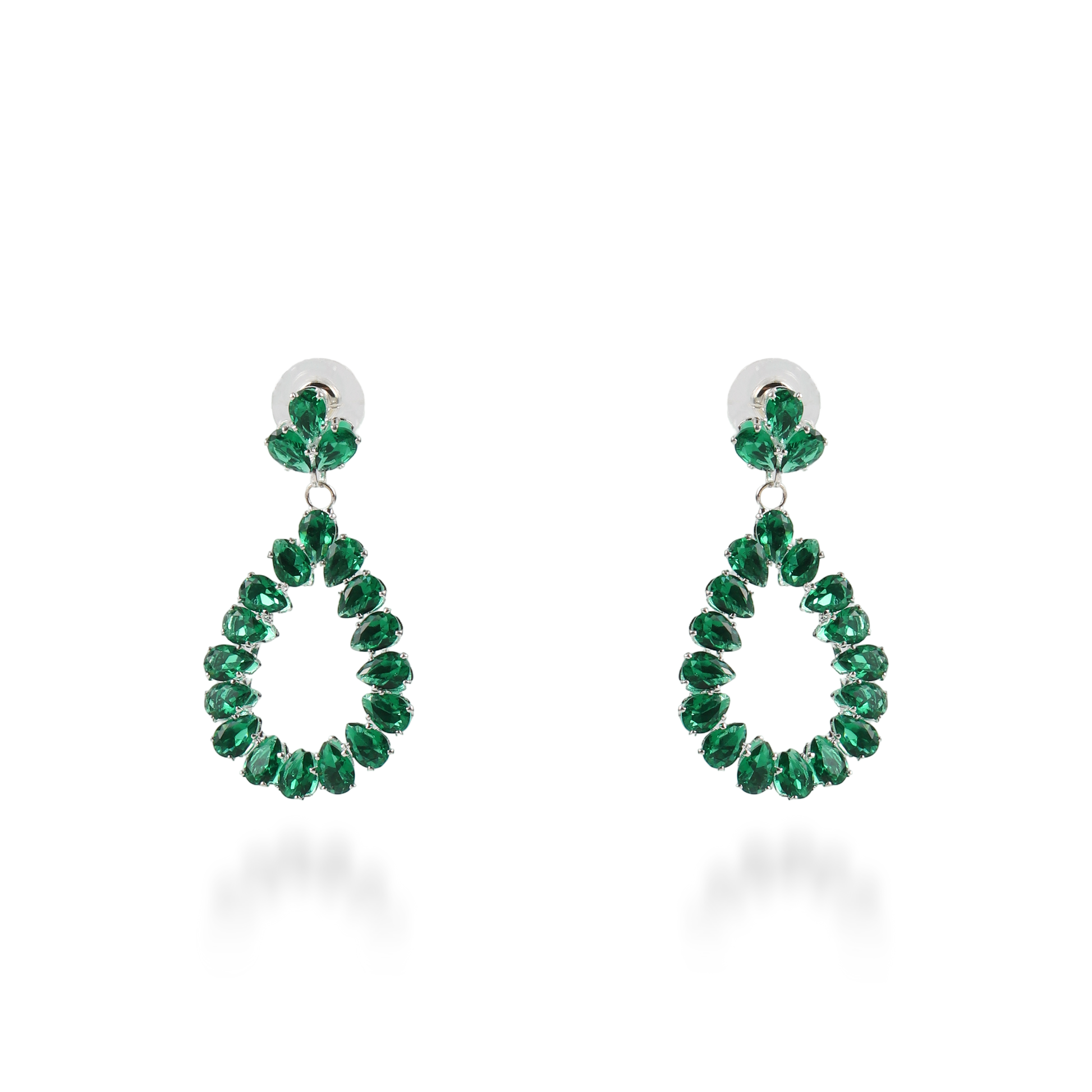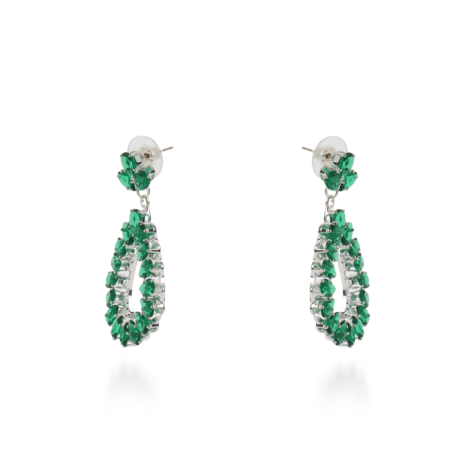 Σκουλαρίκια κρεμαστά σε σχήμα δάκρυ διακοσμημένα με λαμπερές πέτρες Zircon μια εκθαμβωτική επιλογή που θα προσθέσει λάμψη στο στυλ σας. Το διακριτικό σχήμα τους με τις πέτρες Zircon σε πράσινο χρώμα δημιουργούν ένα εντυπωσιακό αποτέλεσμα που θα φωτίσει το πρόσωπό σας και θα προσθέσει λάμψη σε κάθε εμφάνιση. Αυτά τα σκουλαρίκια είναι ιδανικά για επίσημες περιστάσεις και ειδικές εμφανίσεις όπου θέλετε να ξεχωρίσετε με το στυλ σας.