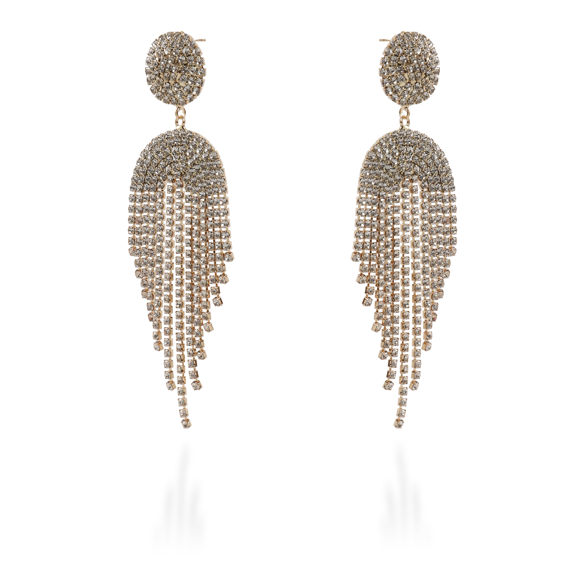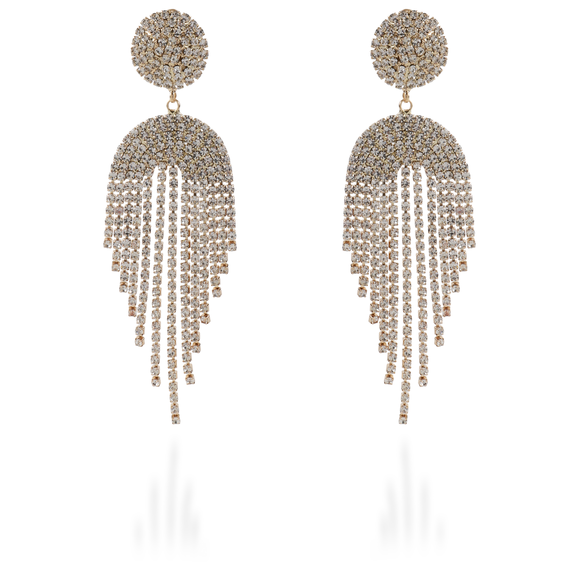 Σκουλαρίκια κρεμαστά από ορείχαλκο σε χρυσό χρώμα, με φανταστικό σχέδιο διακοσμημένο με λαμπερές πέτρες Zircon μια εντυπωσιακή επιλογή για το στυλ σας. Αυτά τα σκουλαρίκια είναι ιδανικά για ειδικές περιστάσεις ή για να προσφέρουν μια ξεχωριστή πινελιά στην καθημερινή εμφάνισή σας.