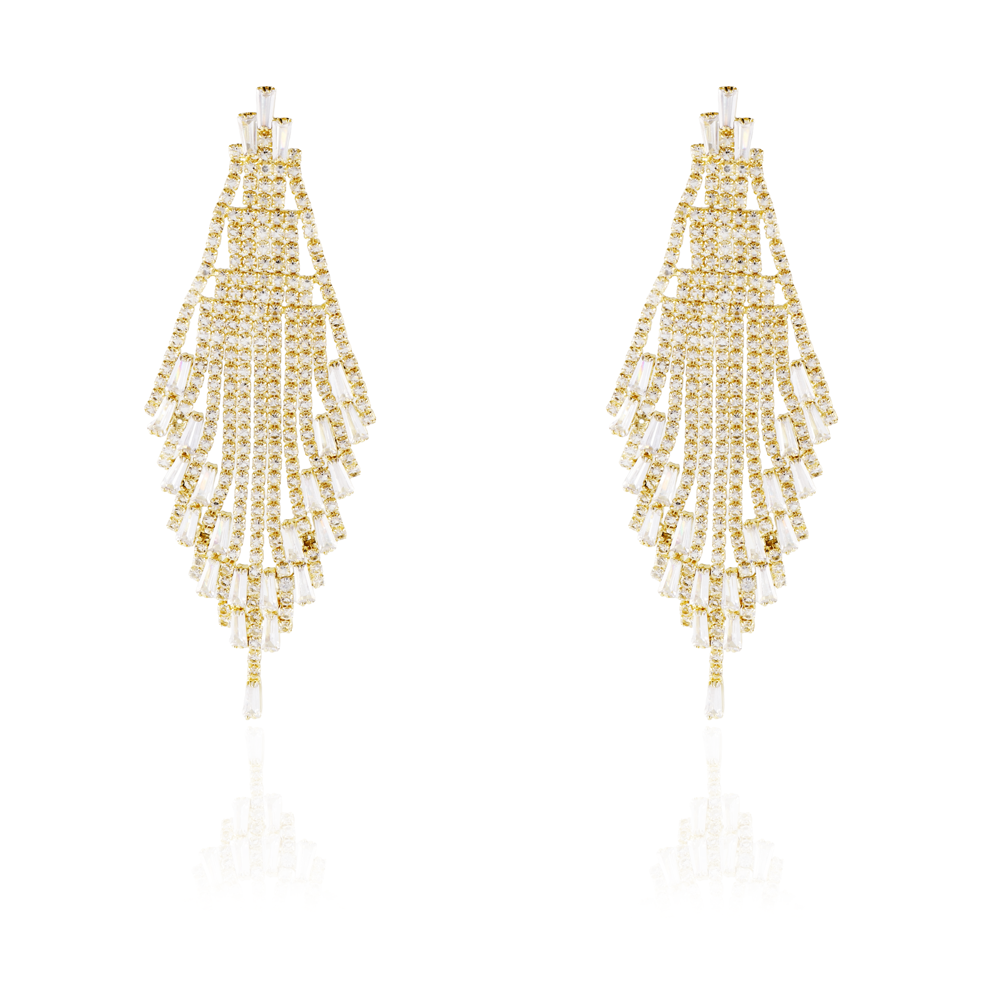 Σκουλαρίκια κρεμαστά από ορείχαλκο σε χρυσό χρώμα και σε σχήμα ρόμβου διακοσμημένα με πέτρες Zircon και Baguette Zircon, μια εκλεπτυσμένη επιλογή που προσθέτει λάμψη στο στυλ σας. Αυτά τα σκουλαρίκια εντυπωσιάζουν και ολοκληρώνουν κάθε εμφάνιση με κομψότητα και στυλ. Είναι ιδανικά για καθημερινή χρήση έως ειδικές περιστάσεις.