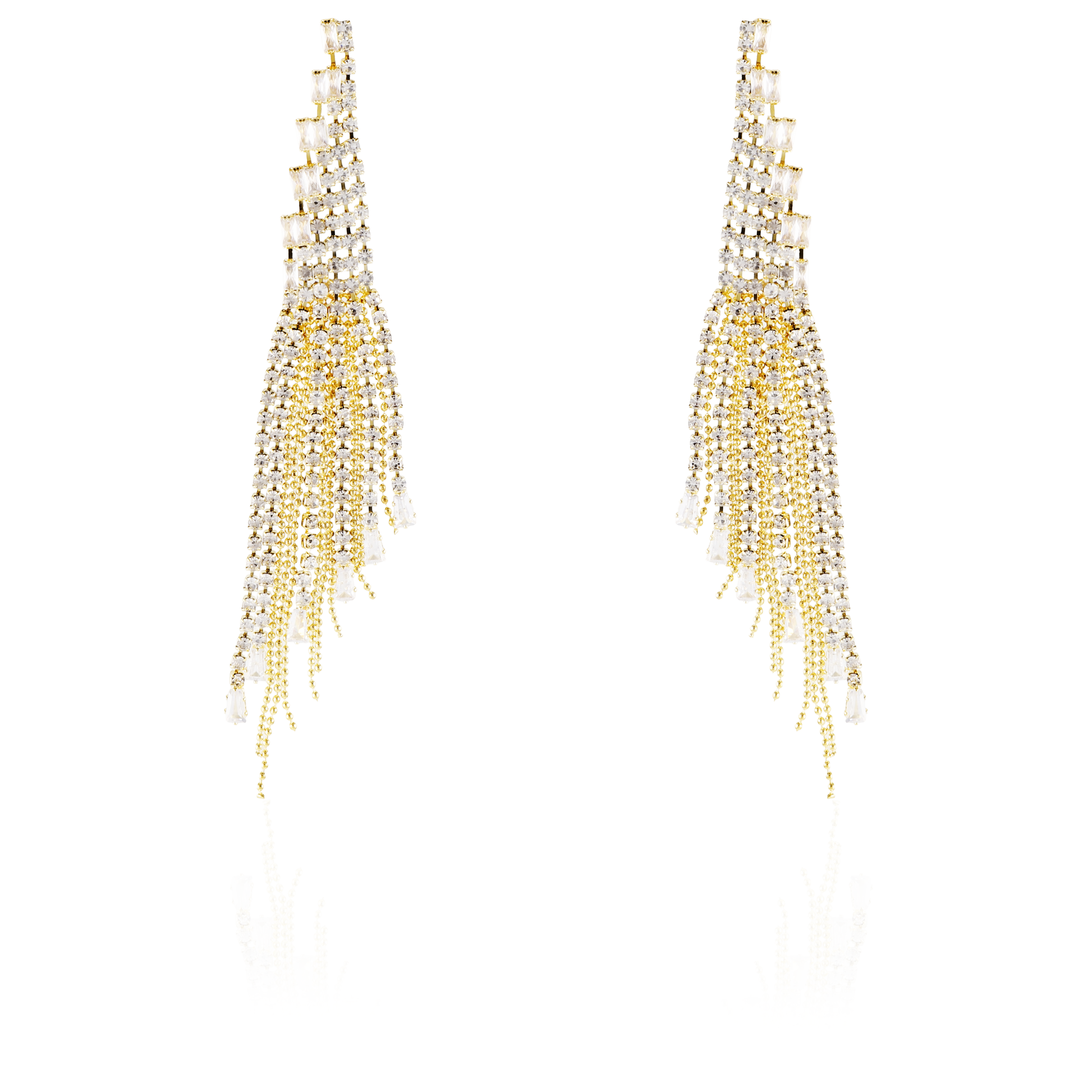 Σκουλαρίκια κρεμαστά από ορείχαλκο σε χρυσό χρώμα, διακοσμημένα με λαμπερές λευκές πέτρες Baguette Zircon και Zircon μια εκθαμβωτική επιλογή για κάθε περίσταση. Αυτά τα σκουλαρίκια είναι ιδανικά για κάθε περίσταση, από τις καθημερινές εμφανίσεις έως τις ειδικές περιστάσεις, και προσθέτουν έναν αέρα κομψότητας και λάμψης σε κάθε εμφάνιση.