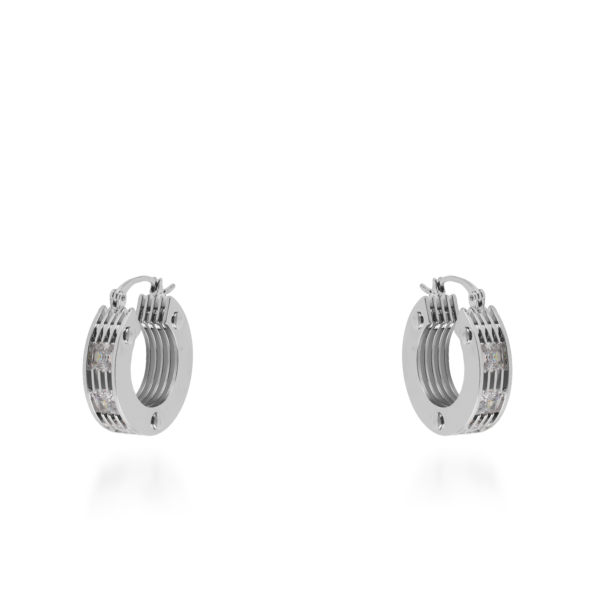 Σκουλαρίκια κρίκοι διακοσμημένα με λαμπερές πέτρες Zircon ένα εντυπωσιακό και κομψό κόσμημα για κάθε εμφάνιση. Αυτό το στυλ σκουλαρικιών είναι κλασικό και κατάλληλο για κάθε περίσταση, προσφέροντας μια διακριτική και λαμπερή πινελιά στο ντύσιμό σας.