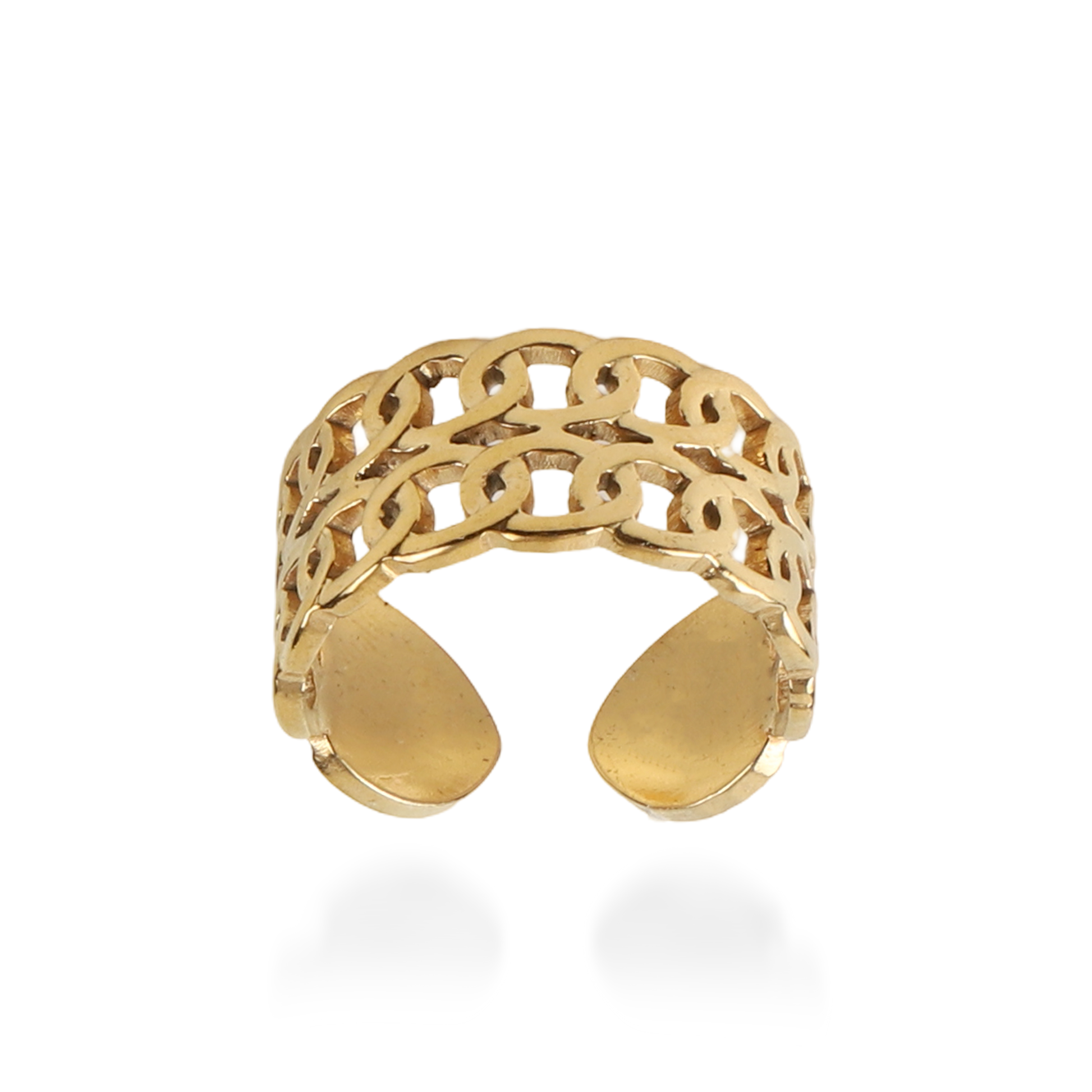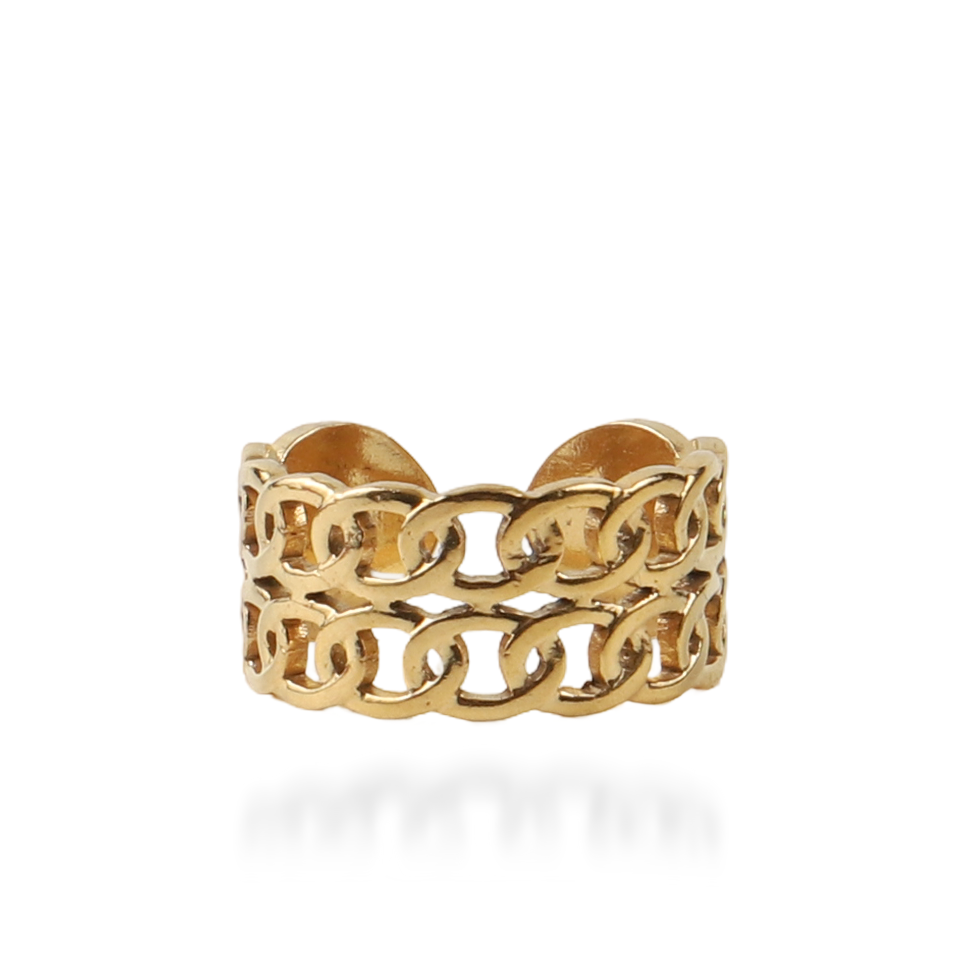 Δαχτυλίδι από ανοξείδωτο ατσάλι με διπλό σχέδιο που μοιάζει με αλυσίδα, δημιουργώντας ένα μοναδικό και εντυπωσιακό στυλ. Το σχέδιο αυτό προσδίδει μια δόση μοντέρνας αισθητικής στο δαχτυλίδι, καθιστώντας το κατάλληλο για κάθε περίσταση. Κατασκευασμένο από ανοξείδωτο ατσάλι, το δαχτυλίδι αυτό είναι ιδανικό για καθημερινή χρήση και θα προσθέσει στυλ και λάμψη σε κάθε εμφάνιση.