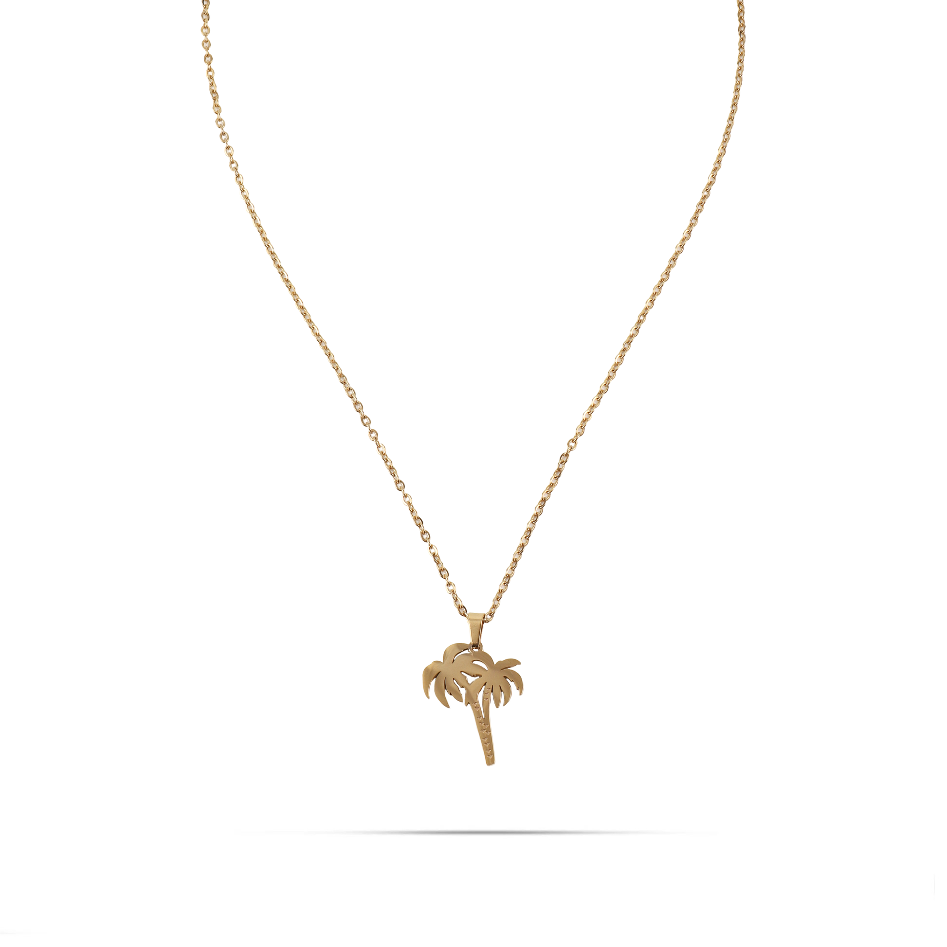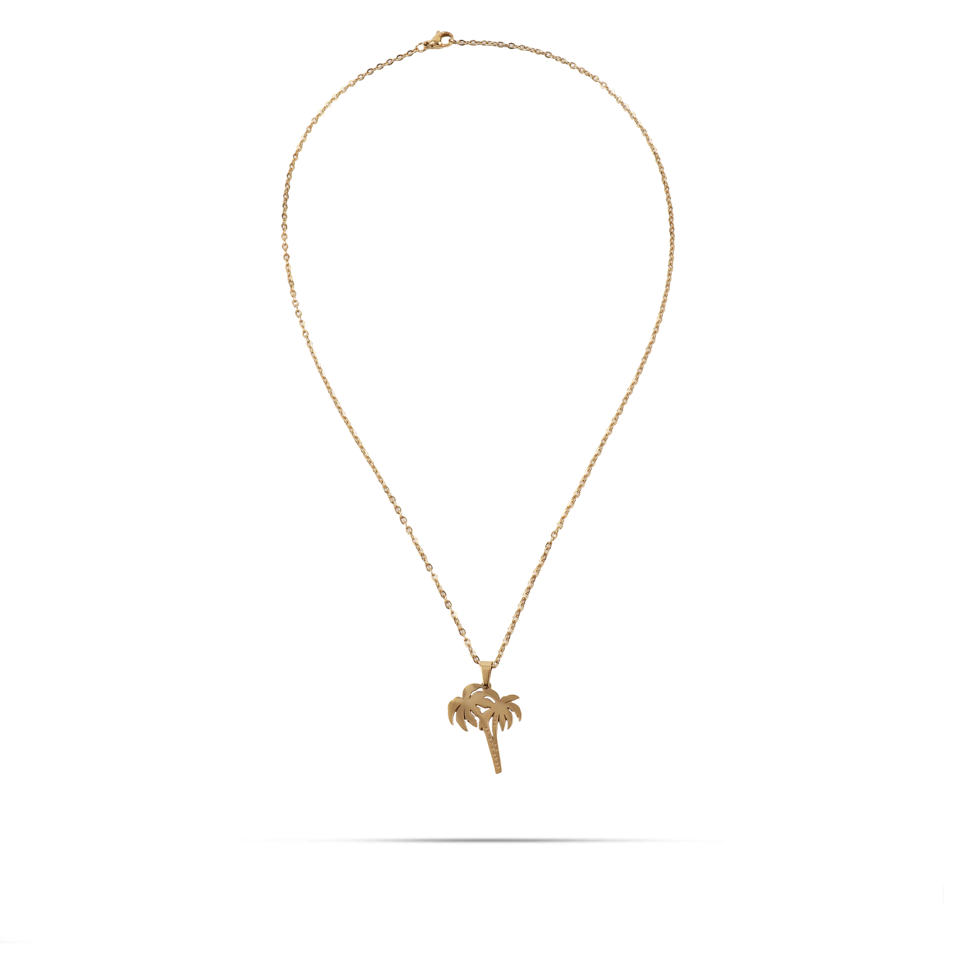 Κολιέ Palm Tree από ανοξείδωτο ατσάλι σε χρυσό χρώμα με μενταγιόν σε σχήμα φοίνικα που προσθέτει μια αίσθηση αναζωογόνησης και φρεσκάδας. Κατασκευασμένο από ανοξείδωτο ατσάλι, είναι ανθεκτικό και ιδανικό για να φορεθεί κατά τη διάρκεια των καλοκαιρινών μηνών ή για να αναβαθμίσετε μια πιο καθημερινή εμφάνιση με μια δόση εξωτικής αισθητικής.
