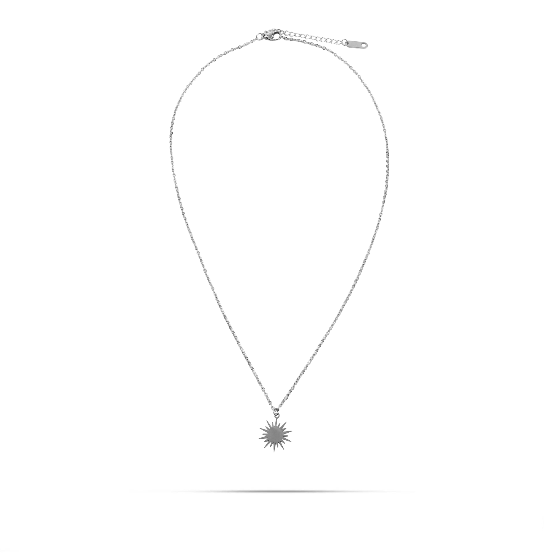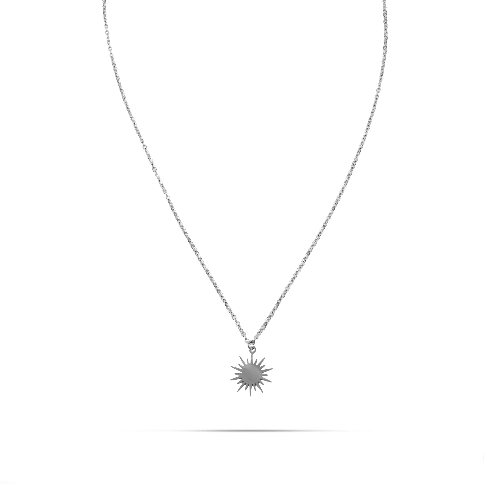 Κολιέ από ανοξείδωτο ατσάλι με μενταγιόν ήλιο. Ο ήλιος είναι ένα δημοφιλές σύμβολο που συνδέεται με το φως, τη ζωή και τη θετική ενέργεια. Αυτό το κόσμημα μπορεί να φορεθεί καθημερινά. Επίσης μπορεί να αποτελέσει μια όμορφη επιλογή για δώρο.