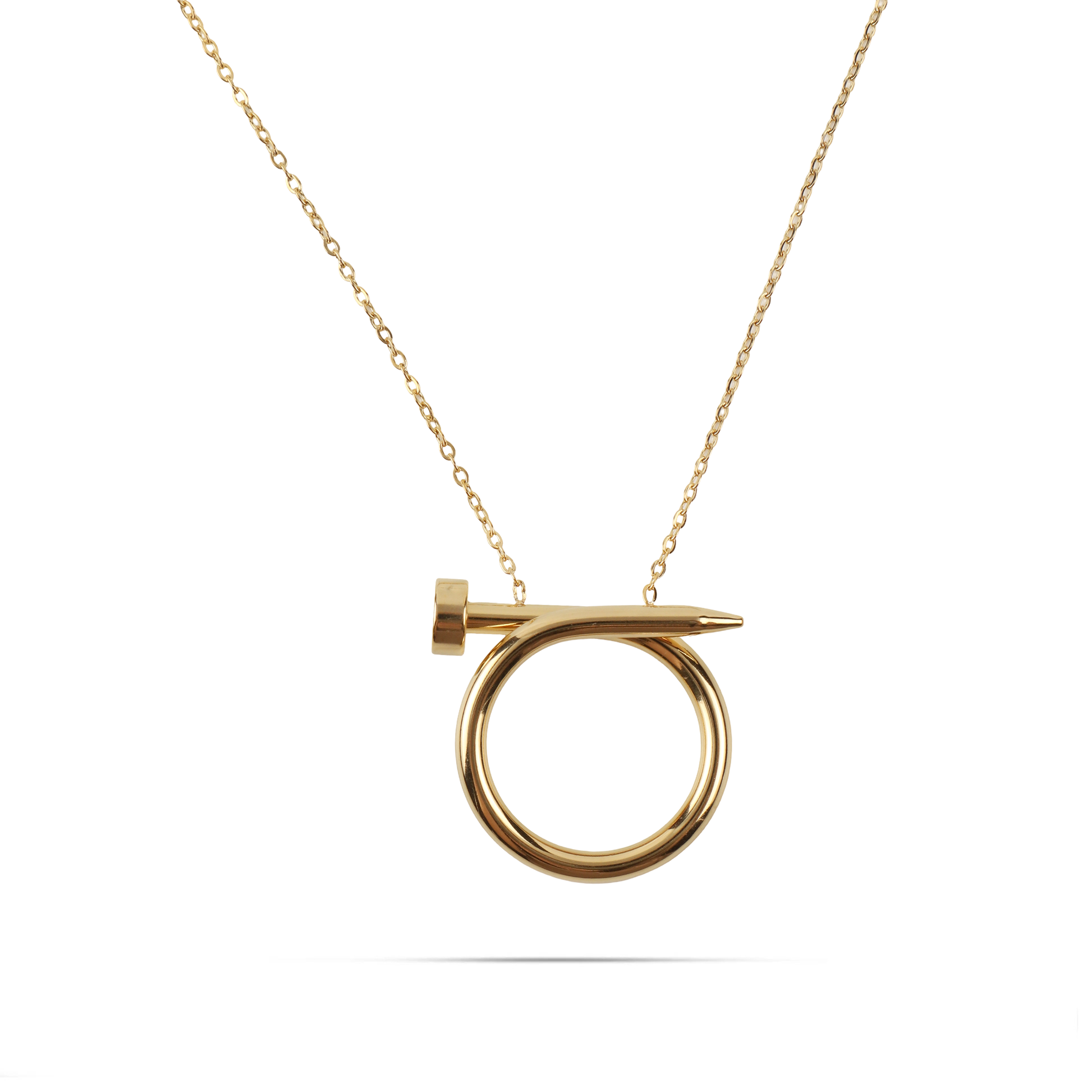 Κολιέ από ανοξείδωτο ατσάλι με μενταγιόν σε σχήμα καρφιού. Είναι ένα κομψό και μοντέρνο κολιέ που μπορεί να φορεθεί μόνο του ή να συνδυαστεί με άλλα κοσμήματα για ένα εντυπωσιακό αποτέλεσμα. Ιδανικό για καθημερινές εμφανίσεις καθώς και για ειδικές περιστάσεις.