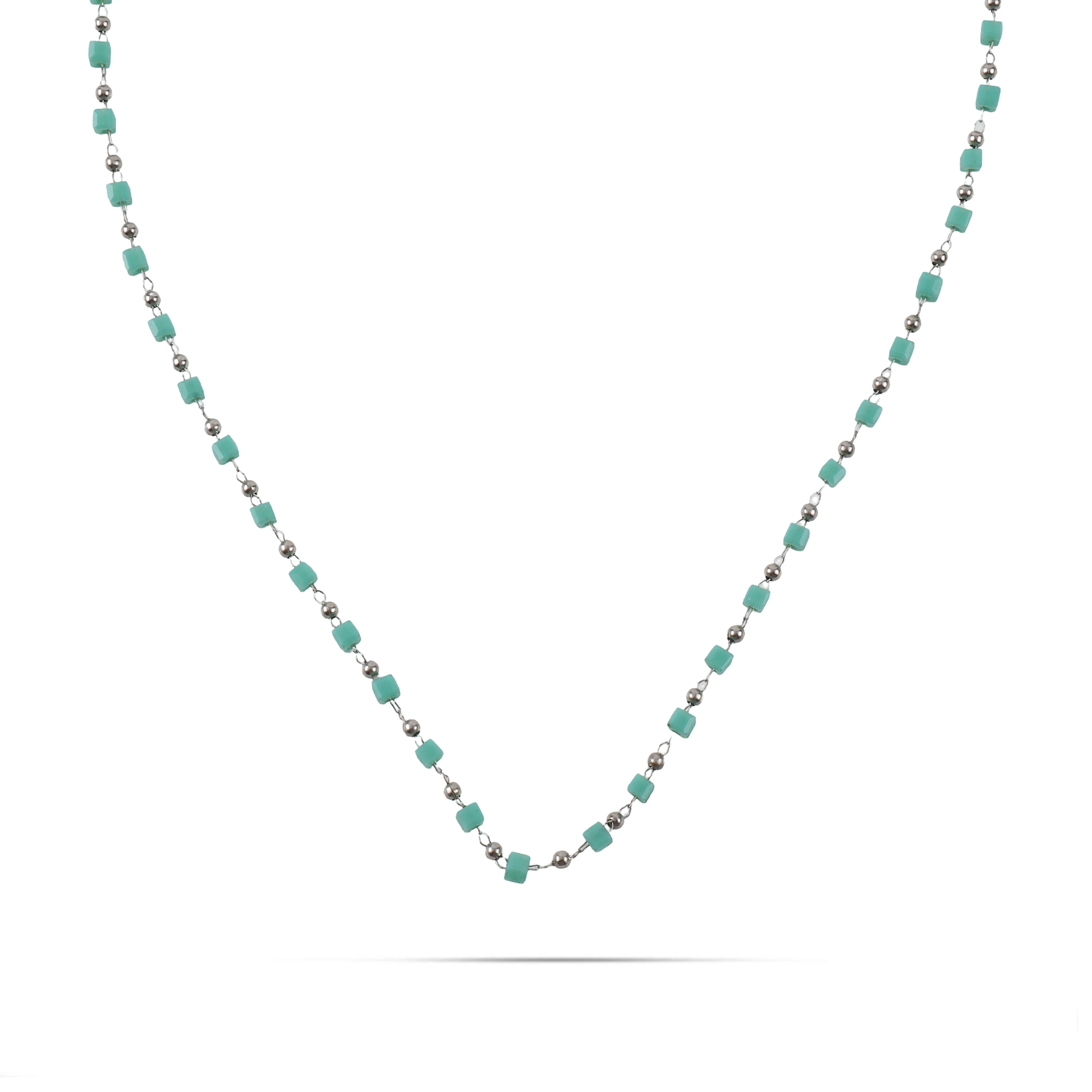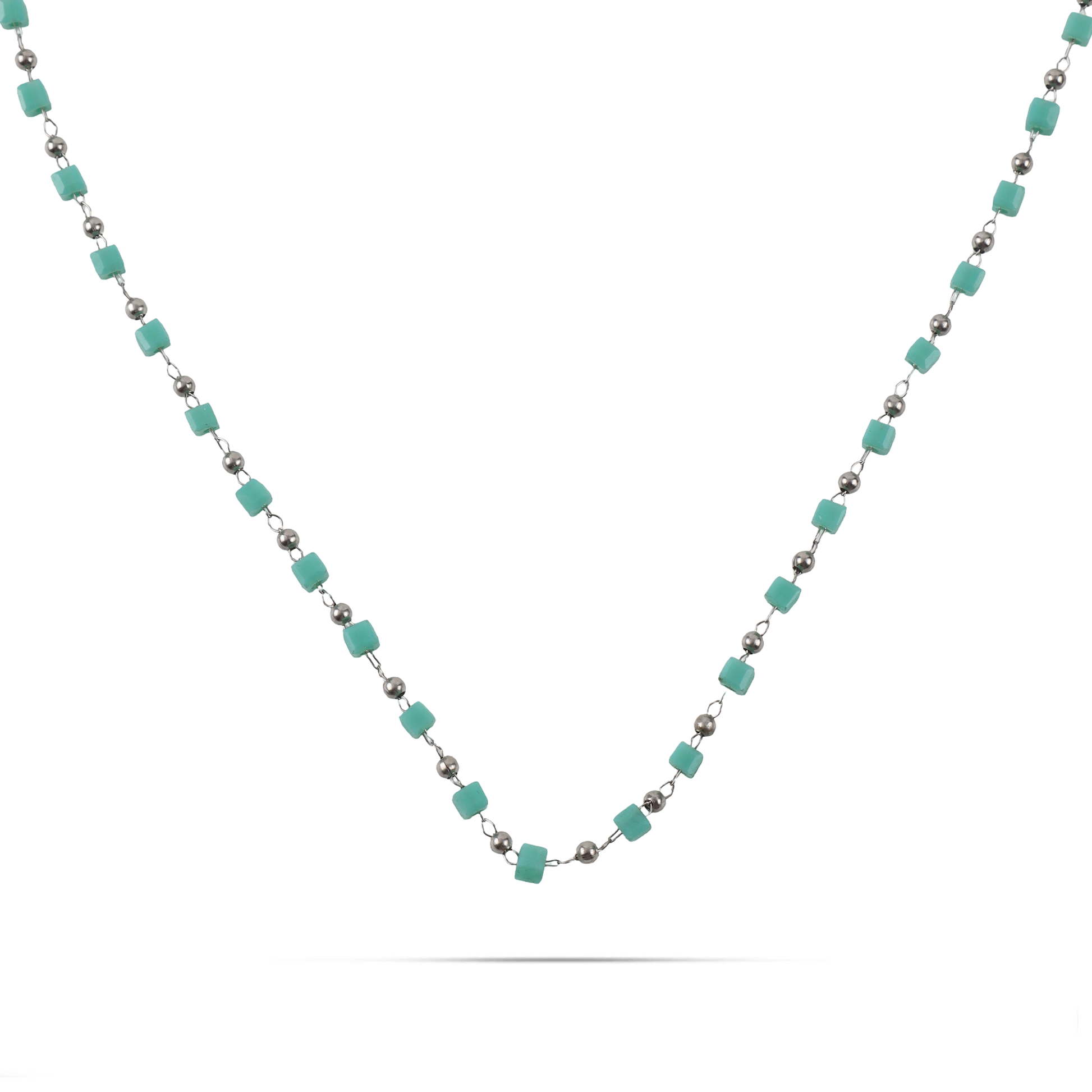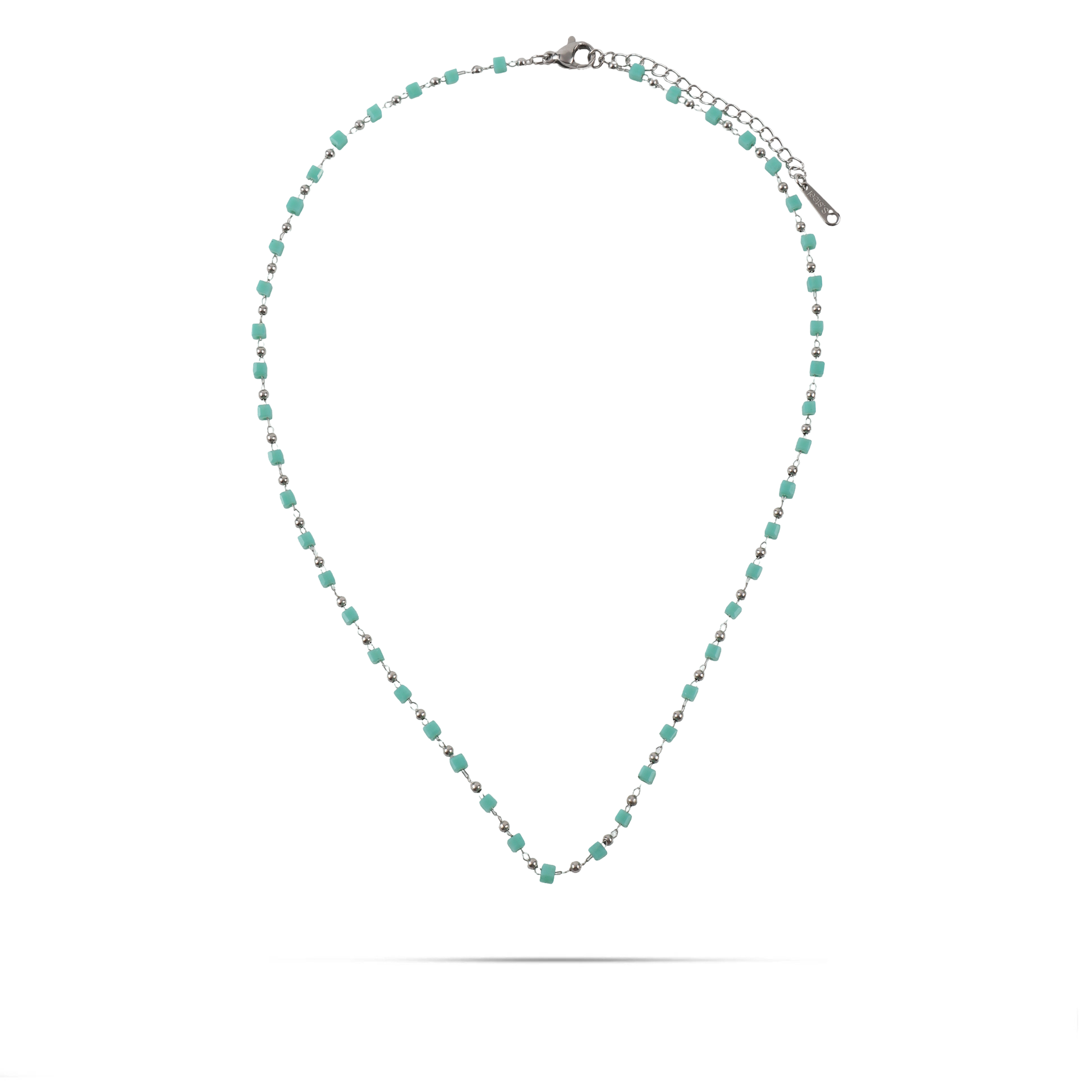 Κολιέ από ανοξείδωτο ατσάλι, με λεπτή αλυσίδα διακοσμημένη με υπέροχες χάντρες. Οι χάντρες προσδίδουν μια διακριτική λάμψη στο κολιέ, δημιουργώντας έναν εκλεπτυσμένο και κομψό αισθητικό συνδυασμό. Αυτό το κολιέ είναι ιδανικό για κάθε περίσταση, από τις καθημερινές σας εμφανίσεις μέχρι τις ειδικές περιστάσεις.