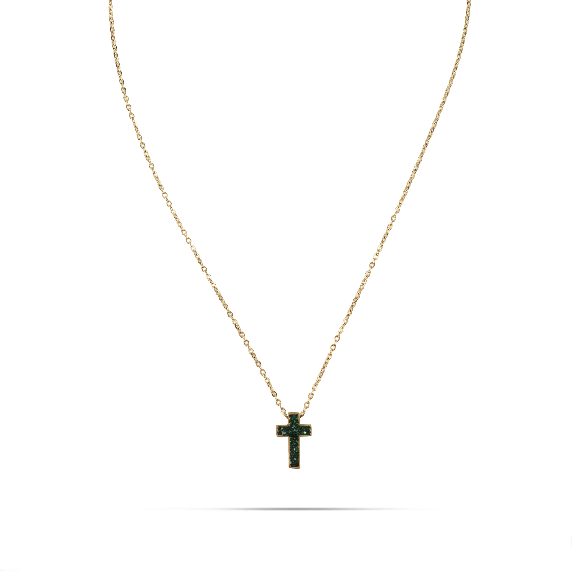 Κολιέ από ανοξείδωτο ατσάλι σε χρυσό χρώμα με μενταγιόν σταυρό διακοσμημένος με λαμπερές πέτρες Zircon. Η επιλογή του ανοξείδωτου ατσαλιού το καθιστά ανθεκτικό και κατάλληλο για καθημερινή χρήση, ενώ παράλληλα προσφέρει μια μοντέρνα αίσθηση. Αυτό το κολιέ είναι μια εκλεπτυσμένη επιλογή που μπορεί να φορεθεί μόνο του ή να συνδυαστεί με άλλα κοσμήματα για ένα εντυπωσιακό αποτέλεσμα! Επίσης μπορεί να αποτελέσει ένα εξαίσιο δώρο για τα αγαπημένα σας πρόσωπα.