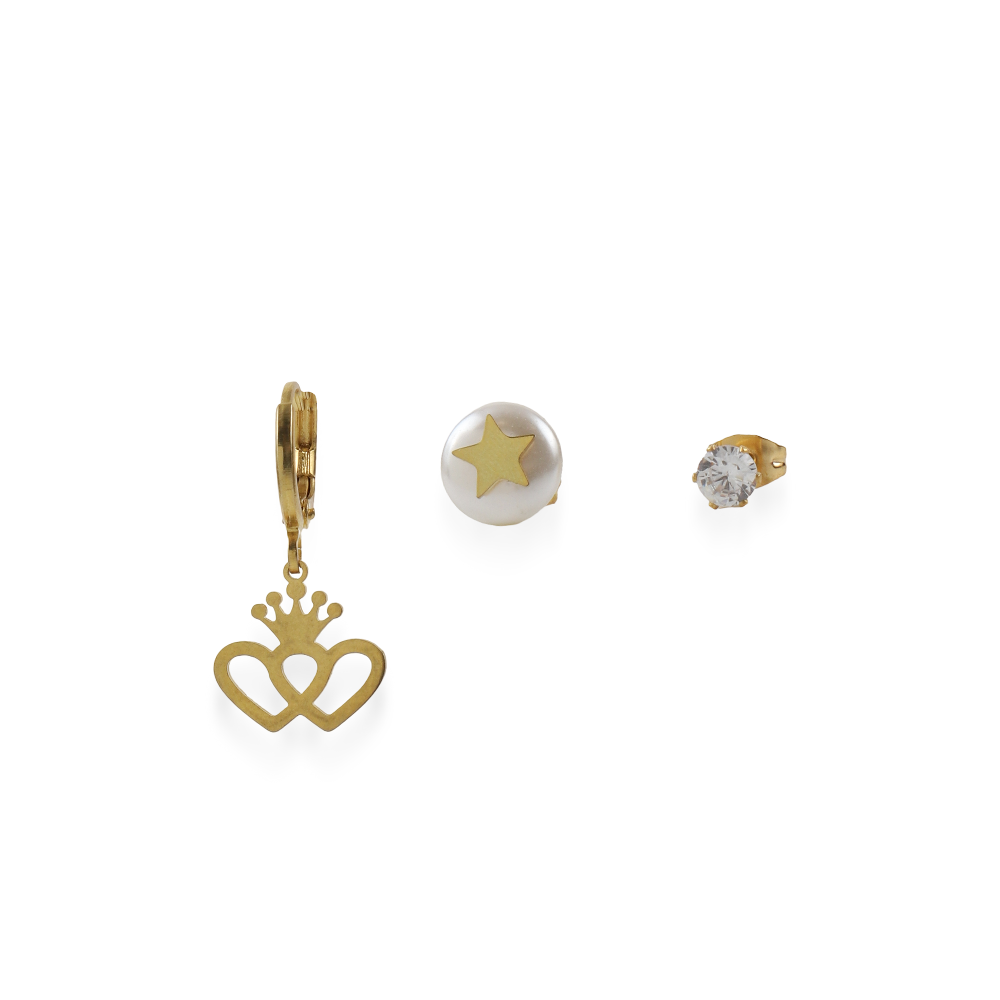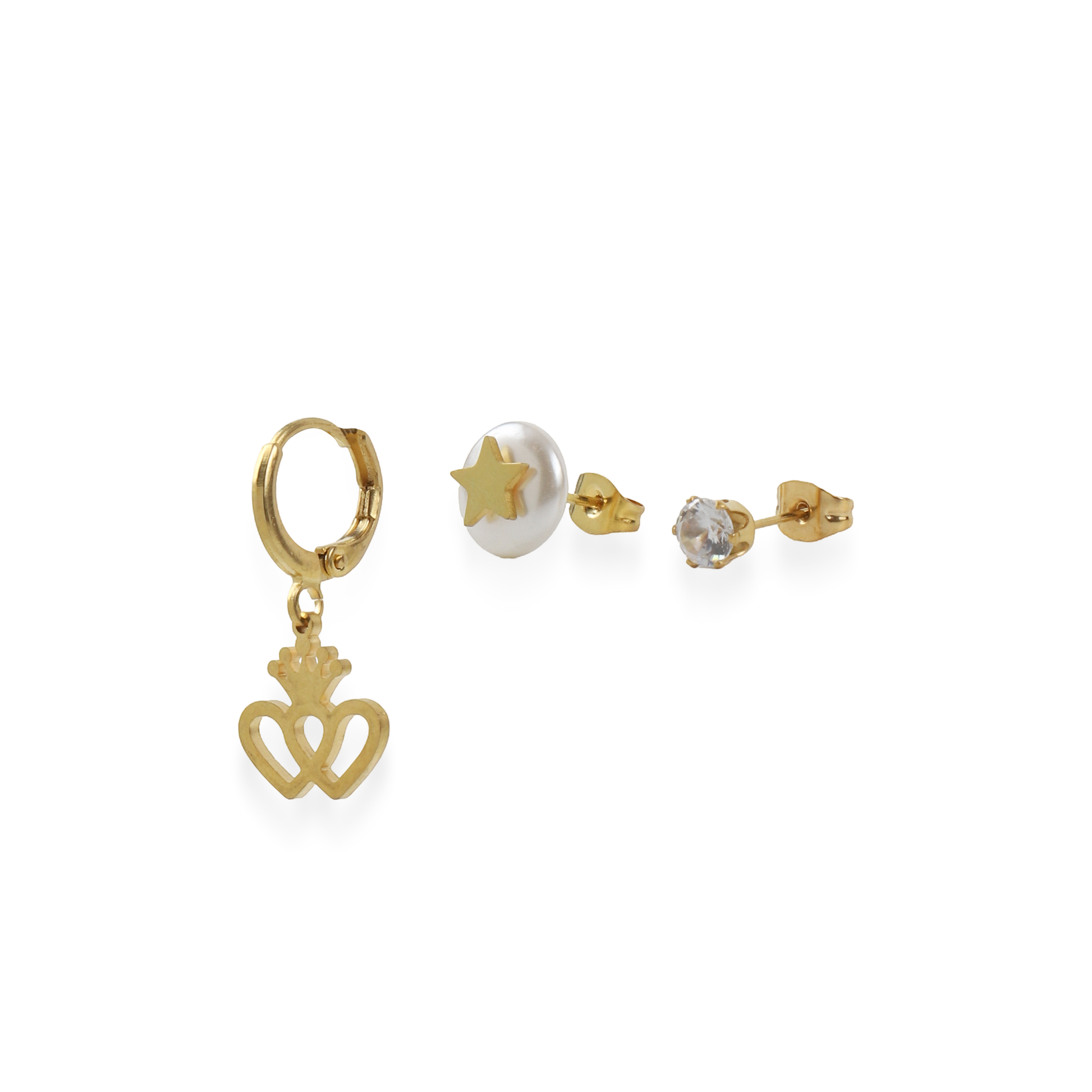 Σετ σκουλαρίκια με καρδιά αστέρι και πέτρα ζιργκόν Set Earrings III
