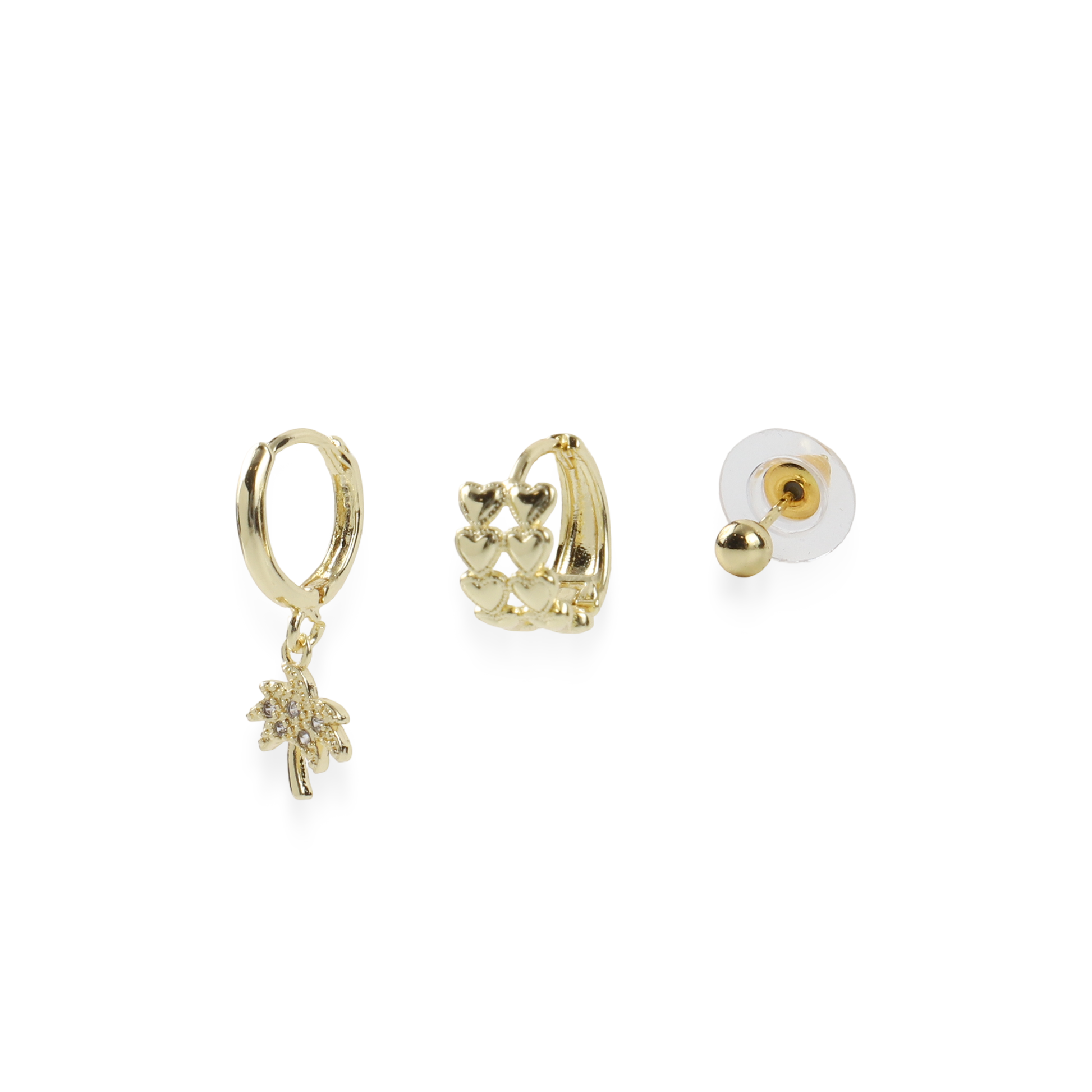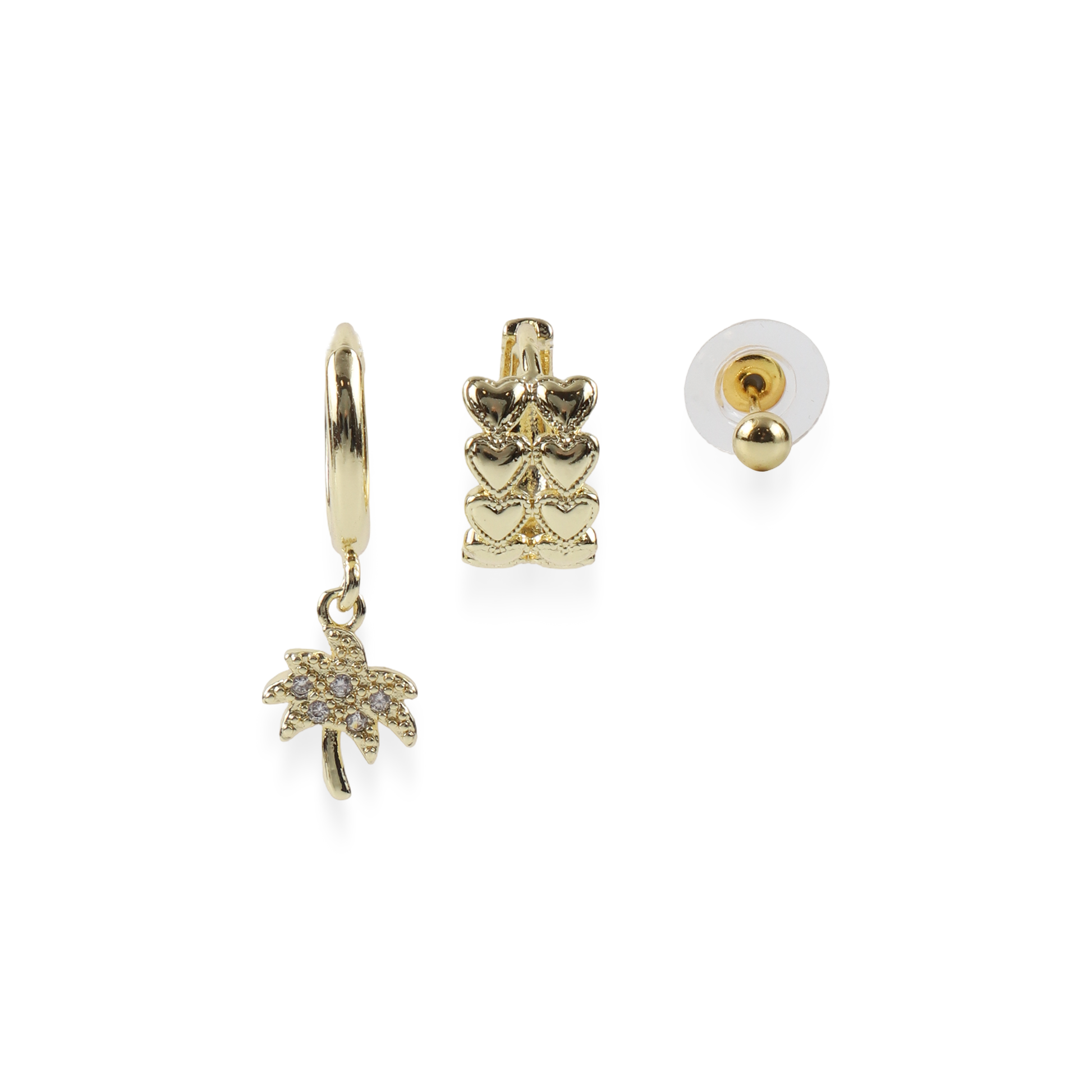 Σετ σκουλαρίκια με φοίνικα καρδιές και πέτρες ζιργκόν Set Palm Tree Hoops