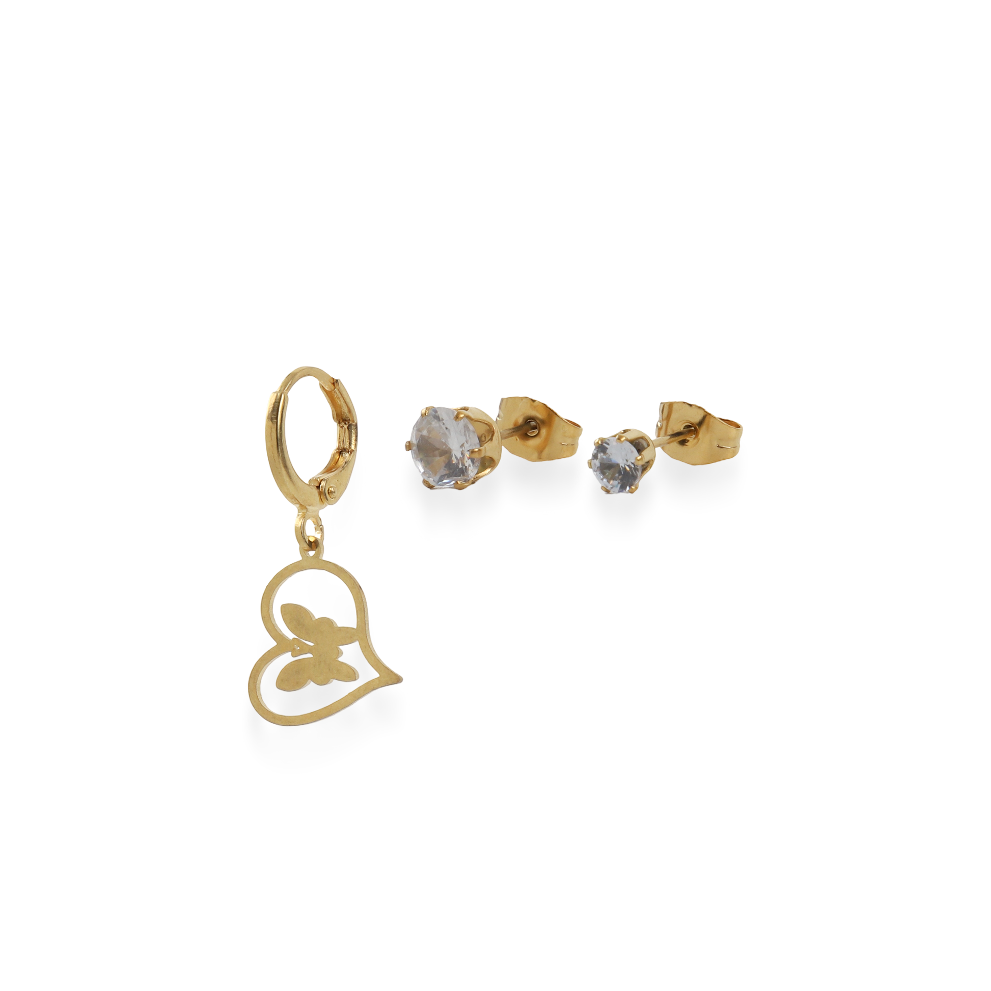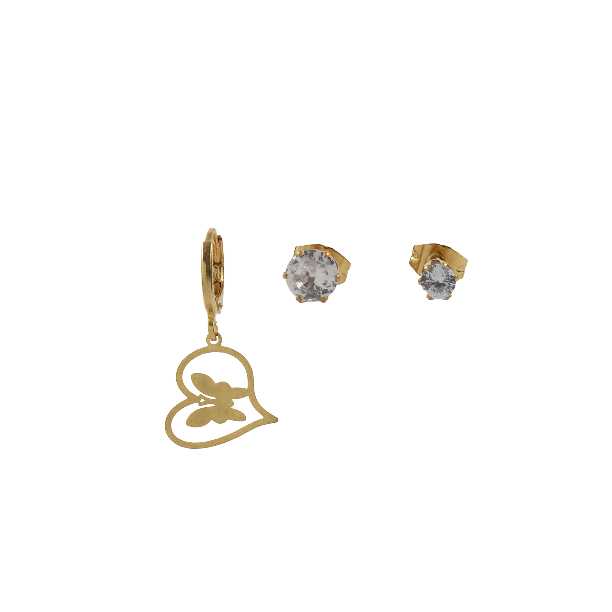 Σετ σκουλαρίκια με καρδιά και πέτρες ζιργκόν Set Earrings I